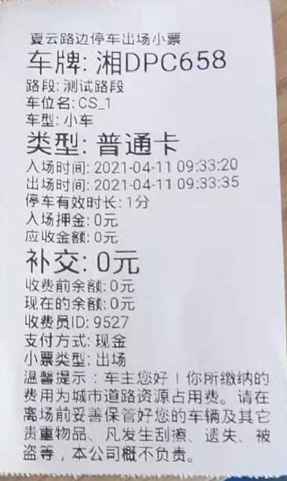 點選車位或拍照識別→確認(rèn)收費結(jié)果→打印出場收費小票。